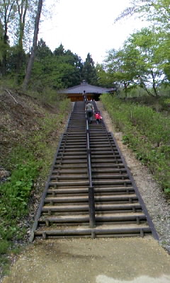 自首する為の金色堂へ向かう階段。案外段数があります。
